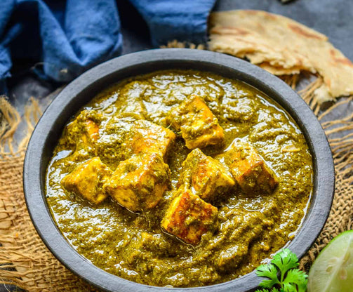 Cottage cheese and spinach cooked together and tempered with spices.